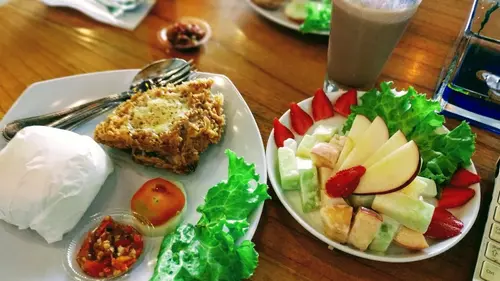 Rekomendasi lokal: pesan dengan tahu goreng dan lalapan segunung.